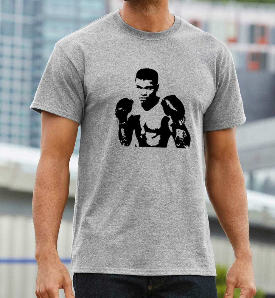 Muhammad Ali, The Greatest, and an inspiration to many people around the world - even today many years after retiring from the ring. The exclusive design is set on a classic Jersey cotton t-shirt. It's available in white & sports grey in a choice of sizes.