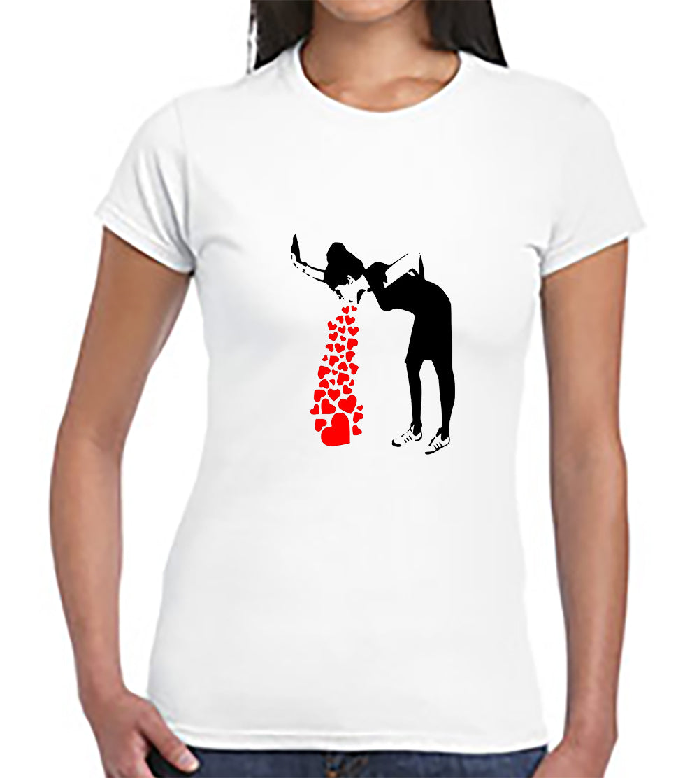 A well known Banksy graffiti image, Love Sick is featured on this cotton t shirt. The design is set on a classic Jersey cotton t-shirt. It's in white in a choice of sizes.