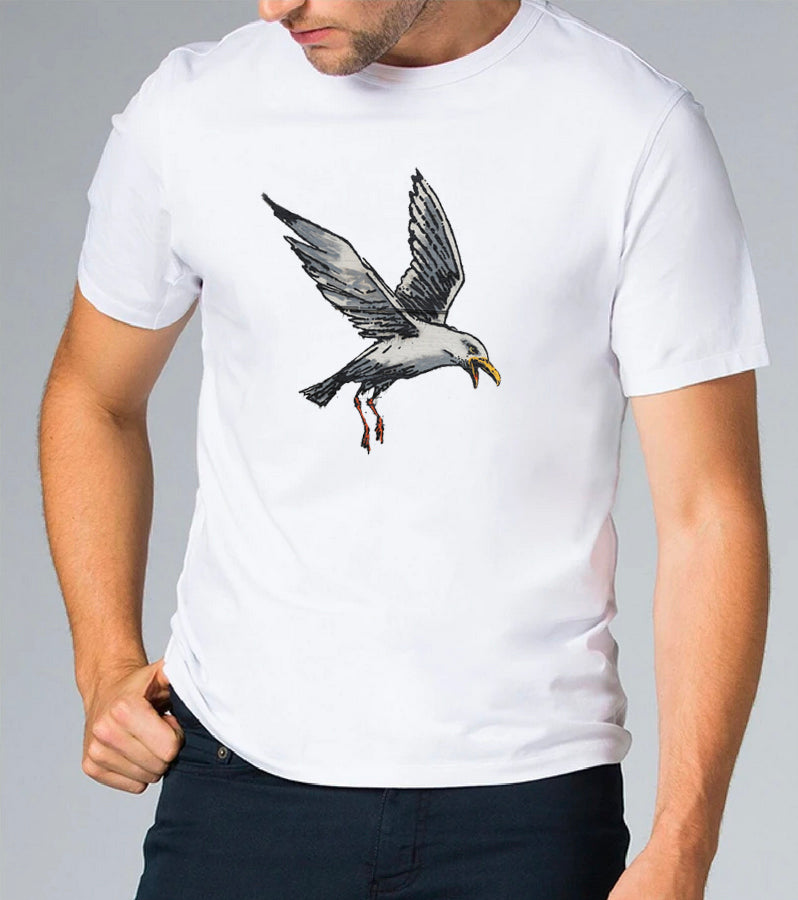 The Banksy Flying Seagull t-shirt is a captivating piece of wearable art that showcases the renowned street artist's iconic style. This design features a seagull in flight. Banksy's clever and thought-provoking imagery challenges societal norms and prompts viewers to question authority and surveillance. The t-shirt serves as a statement piece, allowing individuals to express their appreciation for Banksy's subversive art and their own desire for freedom and privacy. With its powerful symbolism and artistic allure, the Banksy Flying Seagull t-shirt becomes a wearable canvas for social commentary and artistic expression. The design is set on a classic Jersey cotton t-shirt. It's in white in a choice of sizes. NB: The image printed on the t-shirt mimics graffiti artwork and has intentionally slightly blurred.