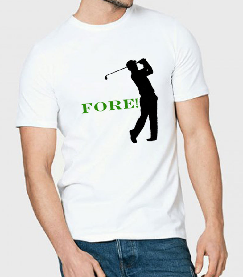 For golfers (or should that be "golfers") who take a little more than regulation to get from tee to green ... this "fore" design offers early warning to follow players out on the course.This new and unique design is set on a classic Jersey cotton t-shirt. It's in white with a choice of sizes.