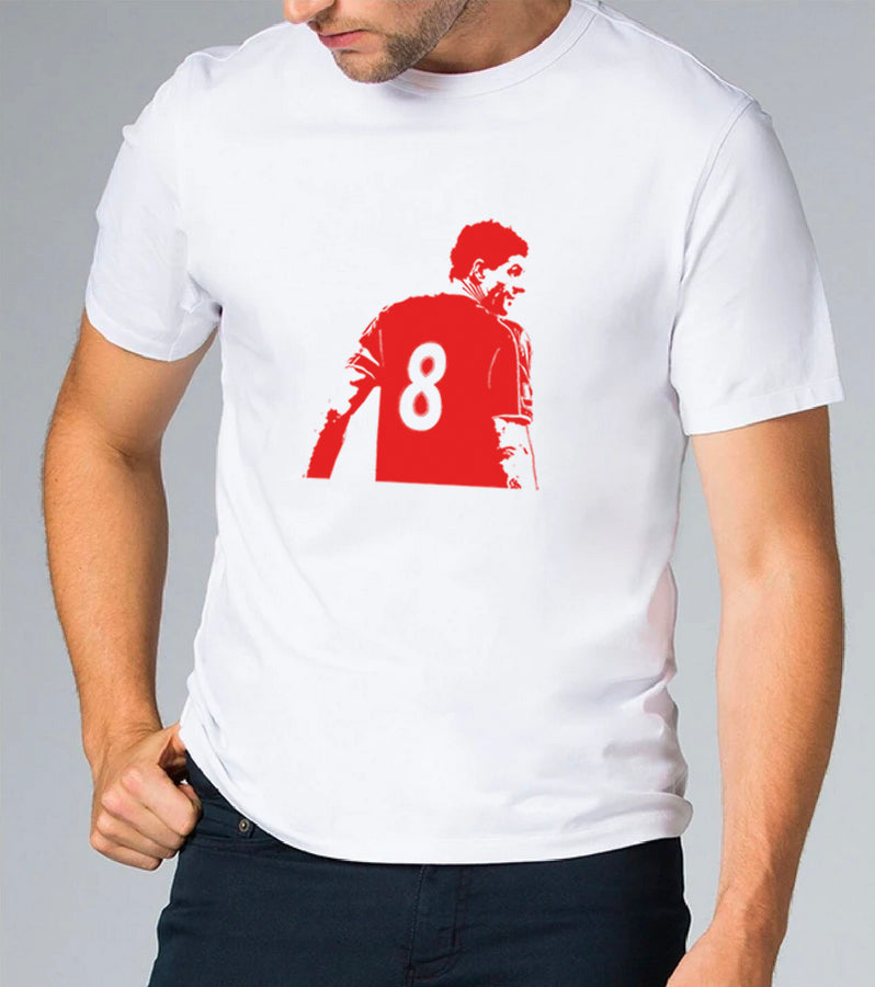 A Liverpool legend Steven Gerrard joins the list of the clubs legends. This exclusive design is set on a classic Jersey cotton t-shirt. It is available in white in a choice of sizes.