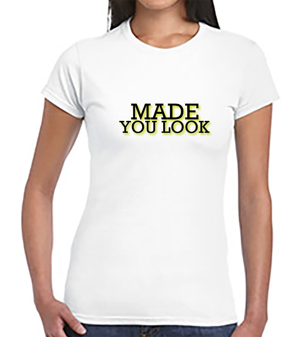 Made You Look t-shirt. The fun design is set on a classic Jersey cotton t-shirt. It's available in white and in a choice of sizes.