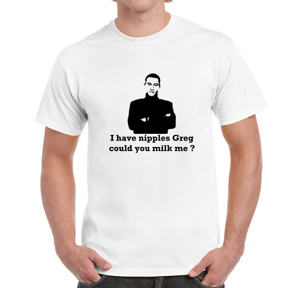Is Jack Byrnes the perfect father-in-law? Well he thinks so. Tough questions have to be asked before a father can welcome any man into the family (or circle of trust), including milking. This popular quote from Meet the Parents is featured on our theme tee. It's available in white and in a choice of sizes.