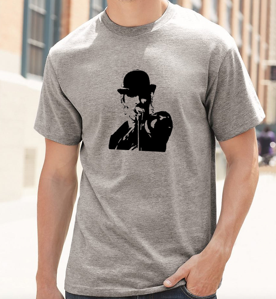 Steve Harley and Cockney Rebel are well known for one particular song, from February 1975, but there's a lot more to them than "Make Me Smile". 1973 to 1977 saw a series of distinctive albums with a unique musical style that built a loyal following throughout Europe. Steve Harley continued to record a number of solo albums, and still tours today with some of the early band members to sell out crowds. One novel concert included a full orchestral production of their first two albums The Human Menagerie and The Psychomodo, performed to a packed Birmingham Symphony Hall crowd in 2012 ( .... and Make Me Smile wasn't even on the play list). This exclusive new design celebrates Steve Harley as a special singer/songwriter talent and is set on a classic Jersey cotton t-shirt. It's available in sports grey and in a choice of sizes.
